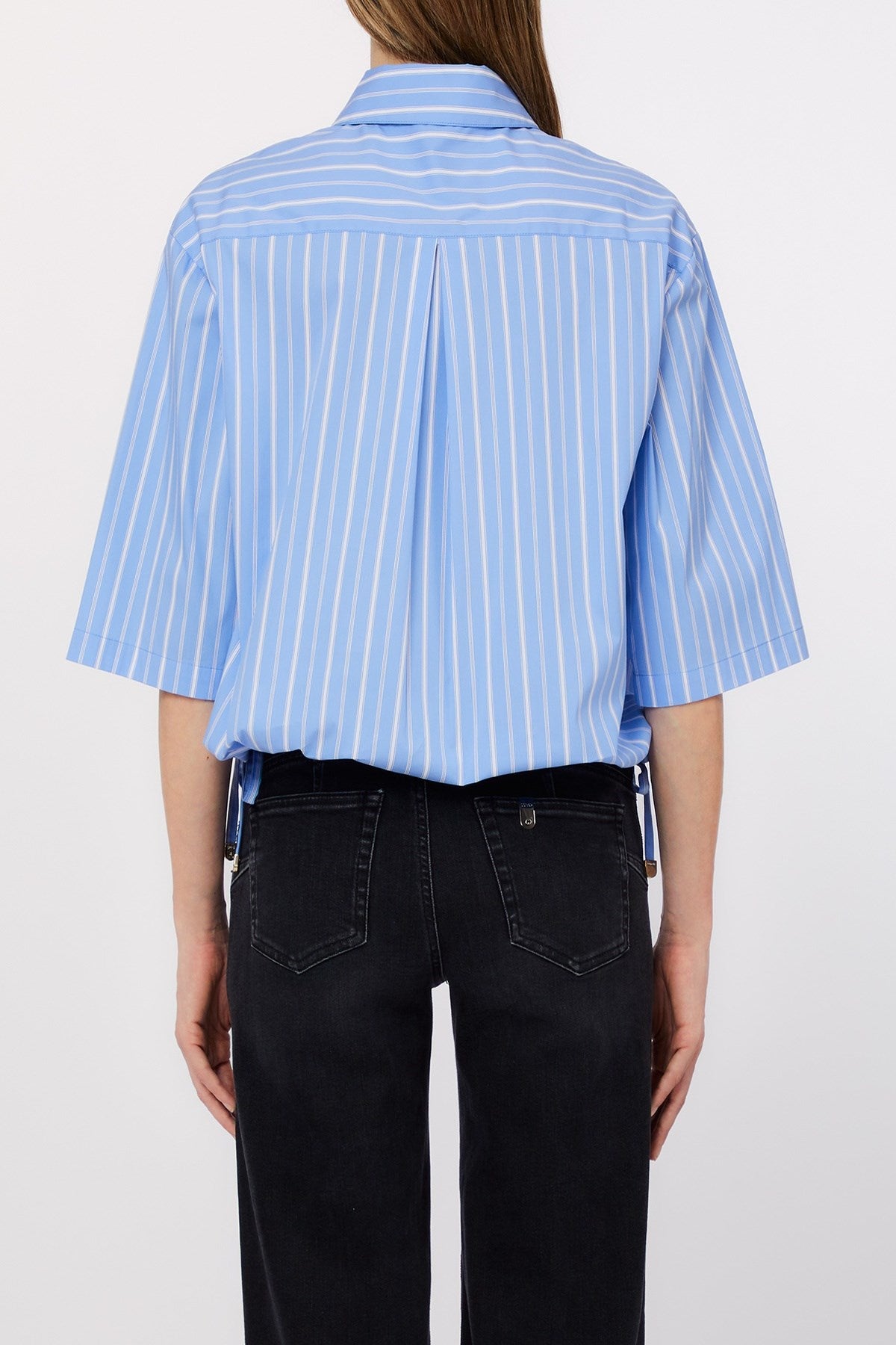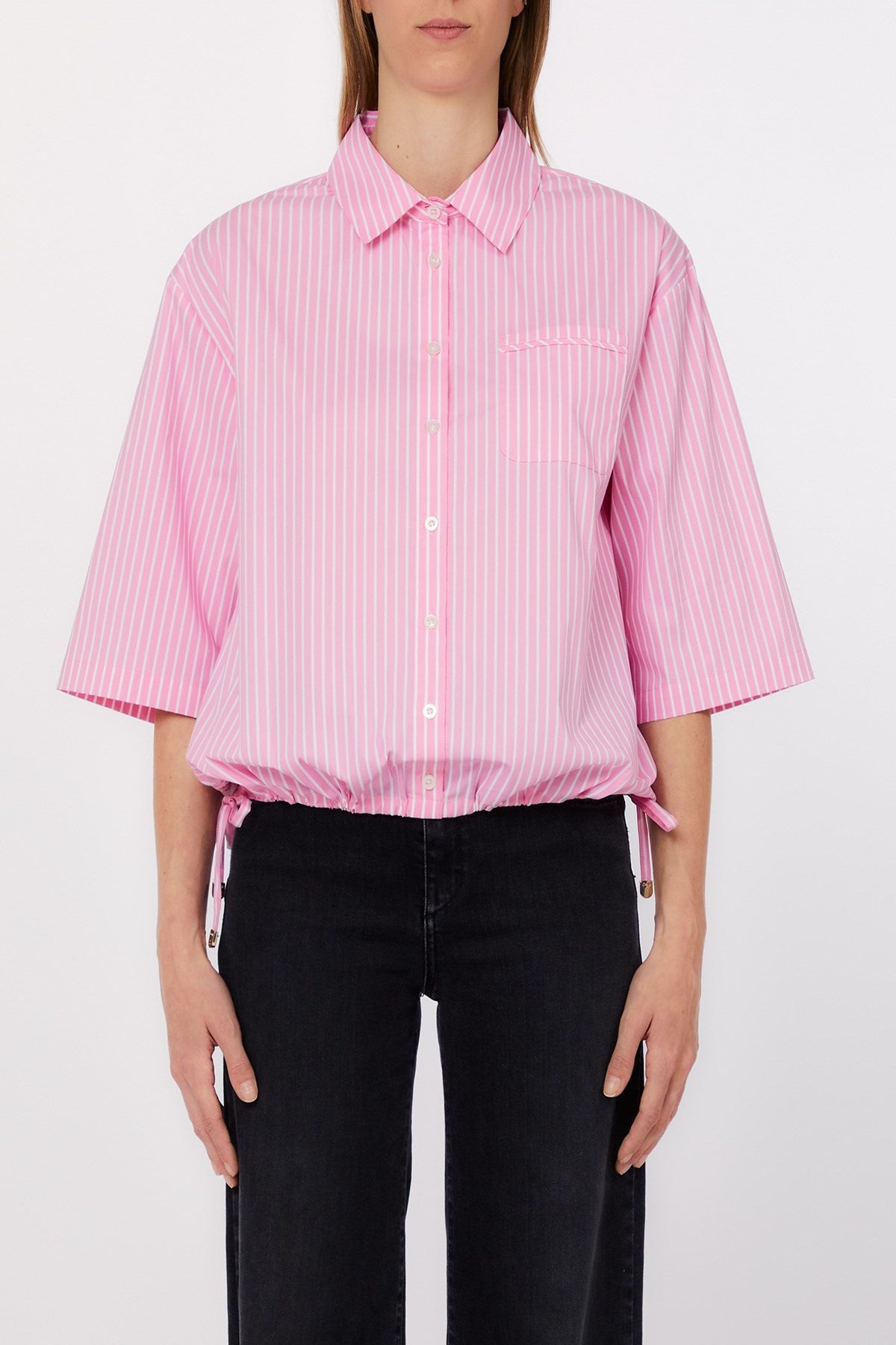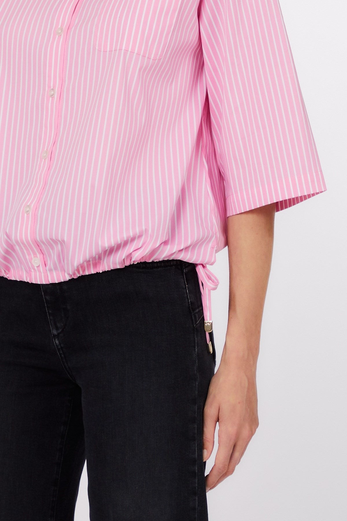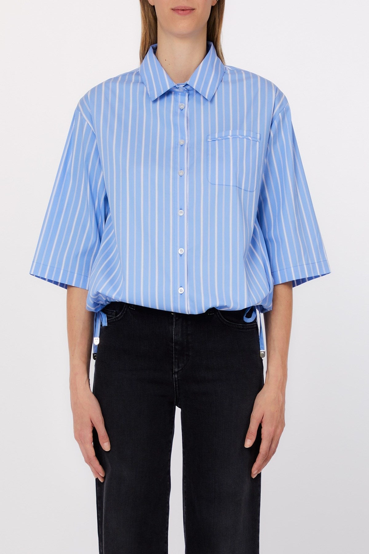 Cette chemise oversize à rayures apporte une touche moderne et impeccable à une coupe décontractée. Avec ses épaules tombantes, ses manches larges et sa poche poitrine, elle allie structure et douceur. De subtils liens latéraux ajoutent une touche ludique, la rendant infiniment polyvalente pour des looks décontractés ou élégants.