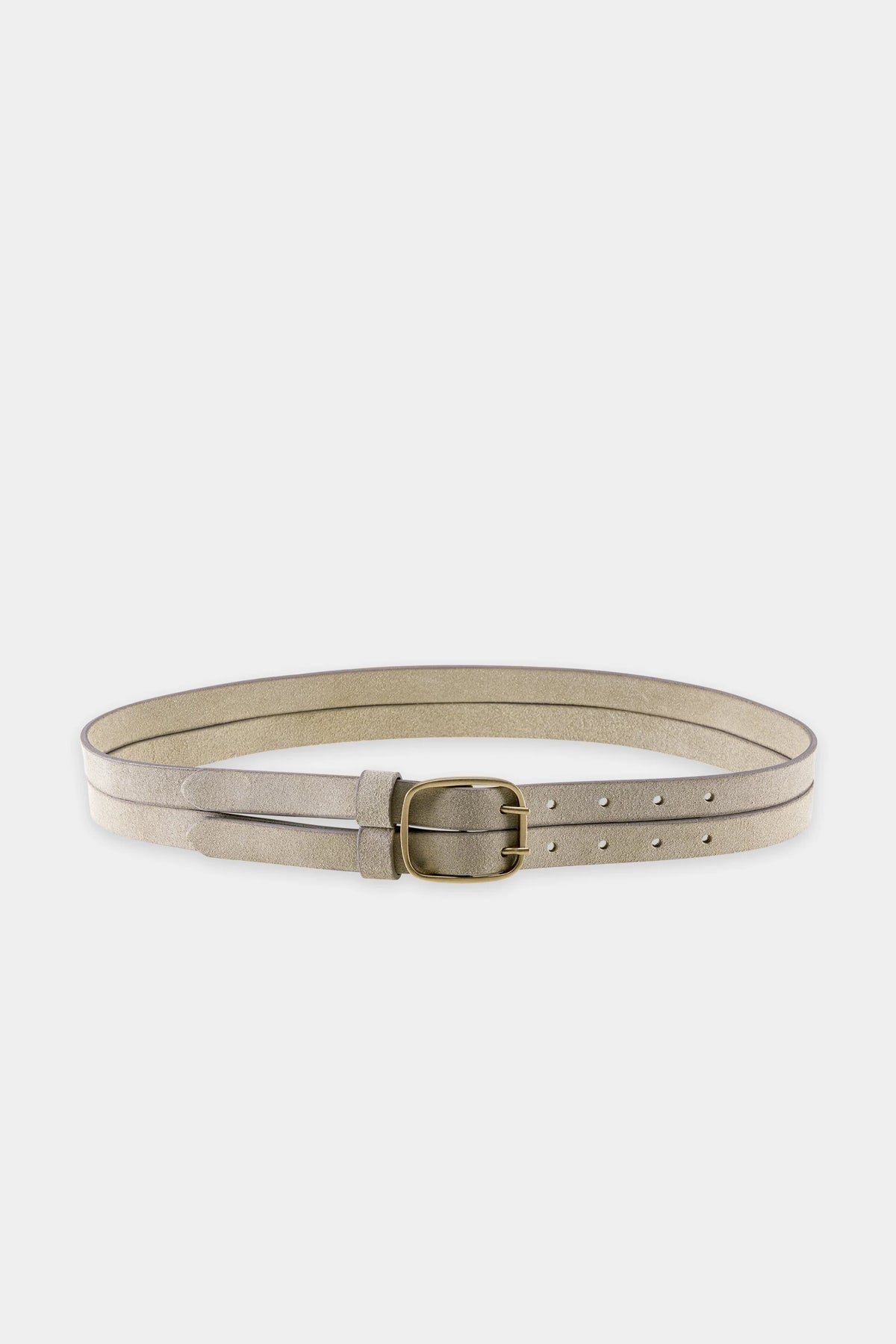 Élégante et moderne, cette ceinture à double lanière s'enroule avec raffinement autour de la taille, rehaussée d'une boucle distinctive à double ardillon dans une teinte métallique polie. Son design minimaliste est mis en valeur par sa silhouette raffinée, apportant une touche d'originalité aussi bien aux robes qu'aux tenues sur mesure. Une pièce phare polyvalente qui souligne la silhouette avec une sophistication discrète.