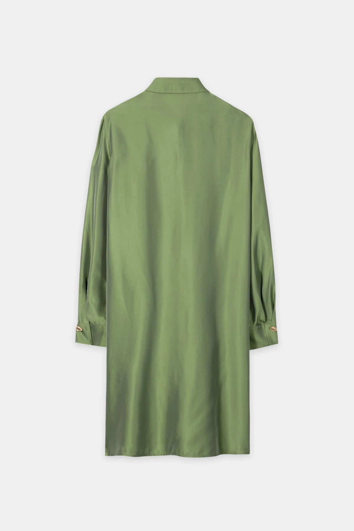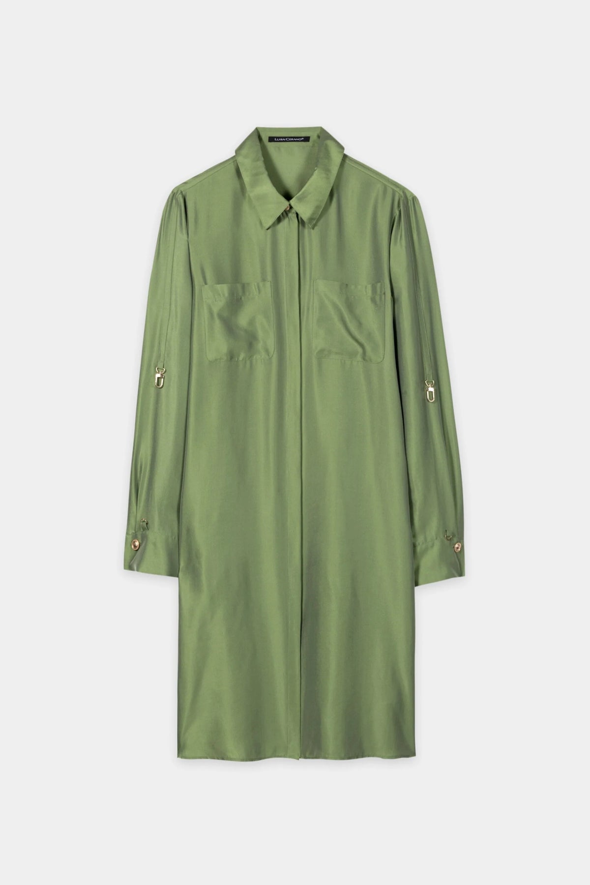 Alliant avec aisance structure et décontraction, cette robe chemise se distingue par son col bien dessiné et ses poches poitrine de style utilitaire, pour un look à la fois soigné et décontracté. Les manches à pattes de réglage et les plis latéraux profonds offrent de multiples possibilités de style et confèrent une belle fluidité au mouvement. Dotée d'une patte de boutonnage dissimulée sur le devant, c'est un incontournable intemporel revisité dans un esprit moderne.