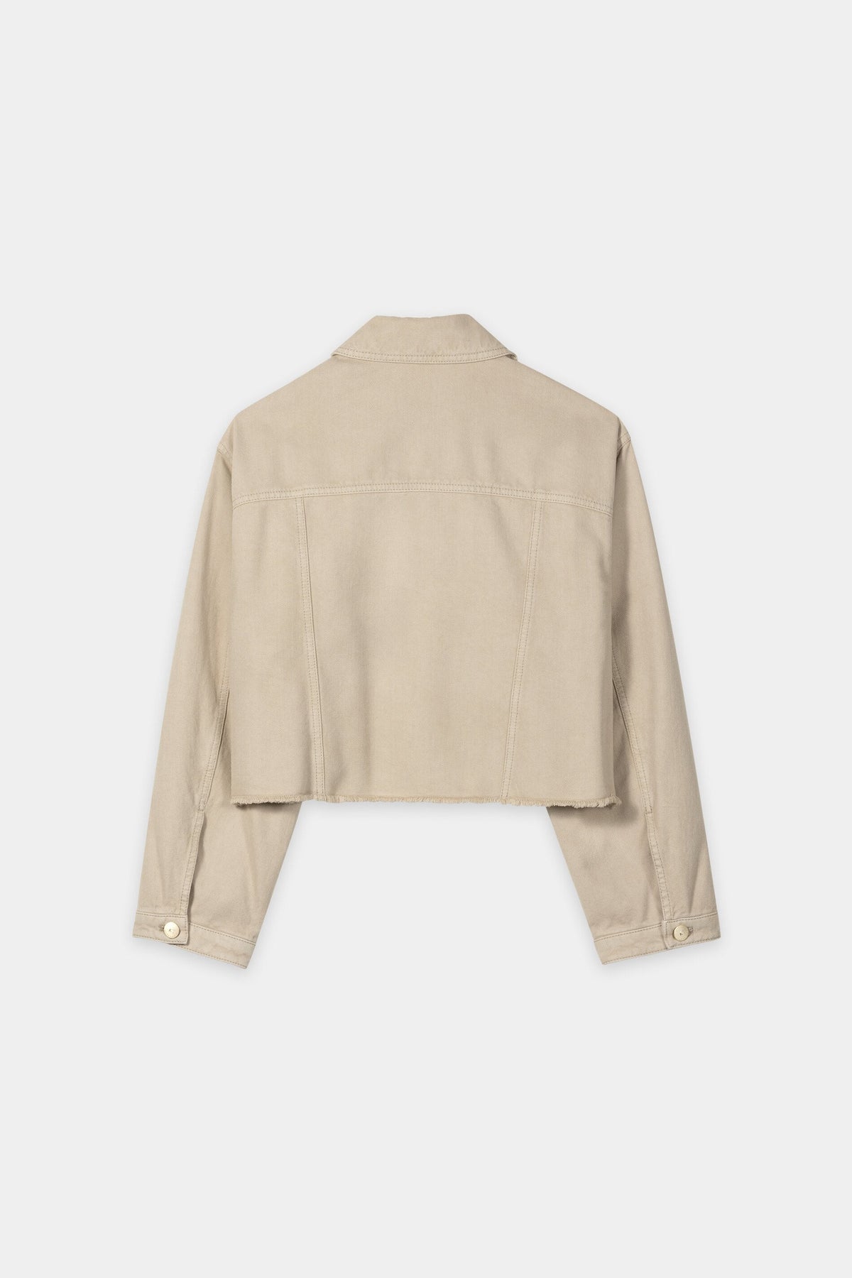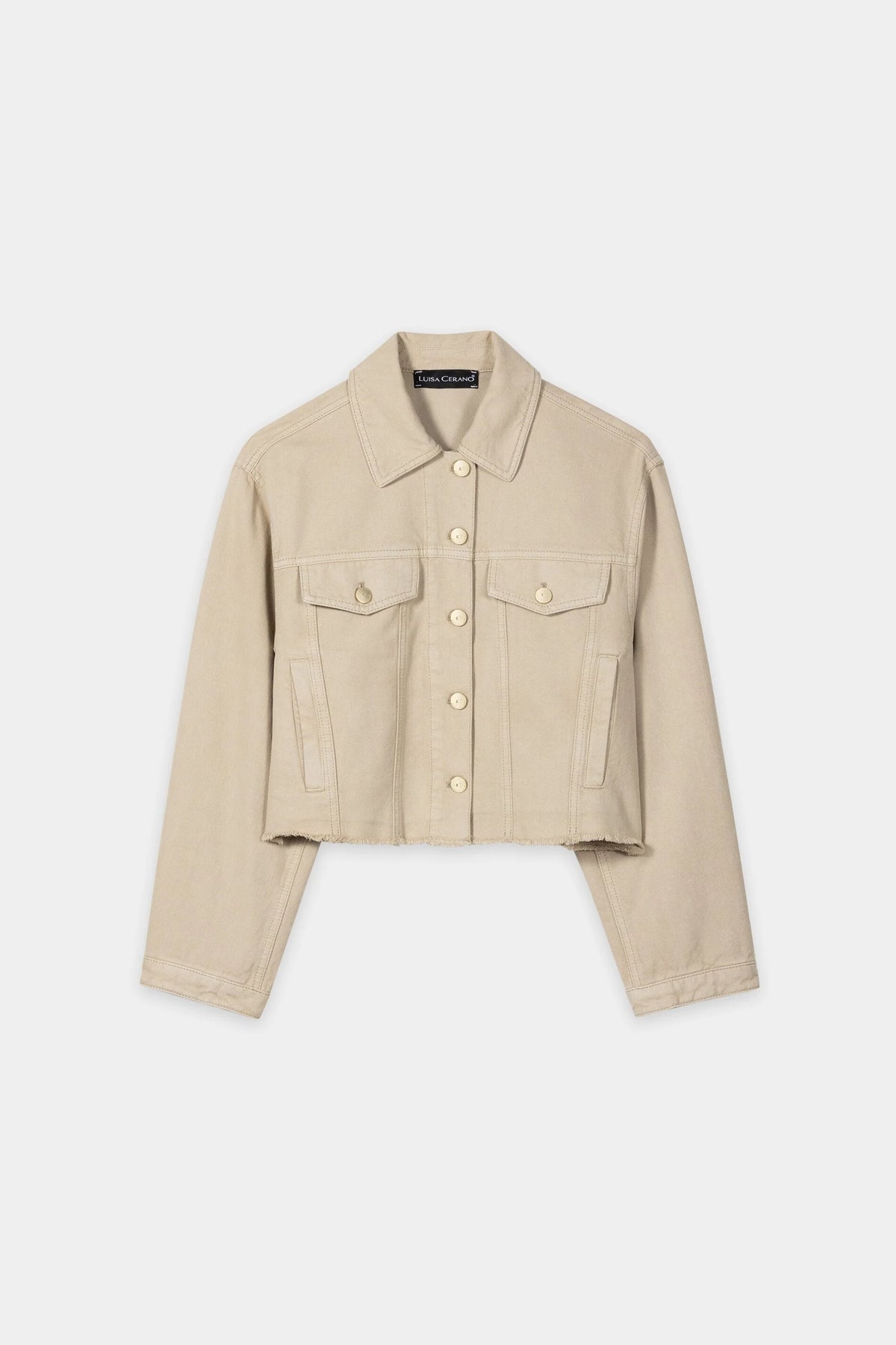 À la fois décontractée et audacieuse, cette veste courte style jean présente des ourlets non finis pour un look usé et rebelle. Les deux poches poitrine à rabat et les poches latérales passepoilées allient fonctionnalité et confort au quotidien, tandis que les coutures structurées sculptent une silhouette flatteuse. Les boutons-pression et les détails raffinés du col lui confèrent un charme intemporel et polyvalent.