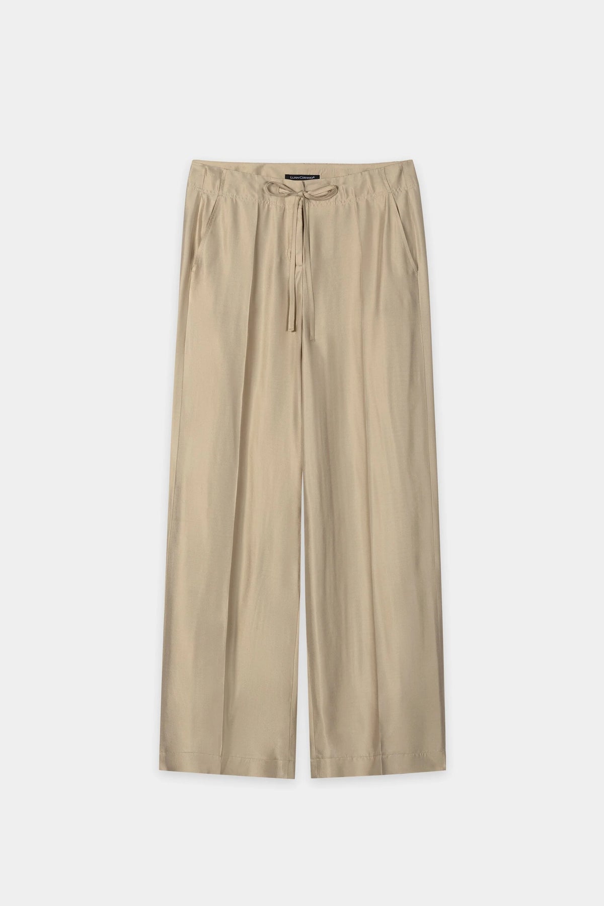 À la fois décontracté et raffiné, ce pantalon à jambes larges est doté d'une taille à cordon de serrage pour un confort optimal et de poches passepoilées à l'arrière pour une touche d'élégance. De subtils plis à l'avant et un ourlet soigné rehaussent cette silhouette décontractée. Une pièce polyvalente, conçue pour passer sans effort du salon à la rue.