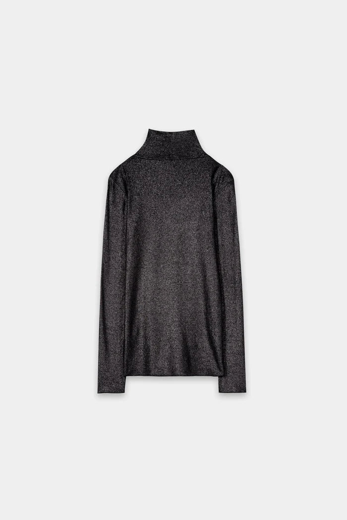 Élégant et sophistiqué, ce pull à col roulé chatoyant apporte une touche raffinée à toutes vos tenues. Sa matière fluide épouse les formes du corps avec un drapé élégant, ce qui le rend parfait pour être porté seul ou en superposition. Une pièce incontournable pour rehausser vos basiques avec une touche de brillance.