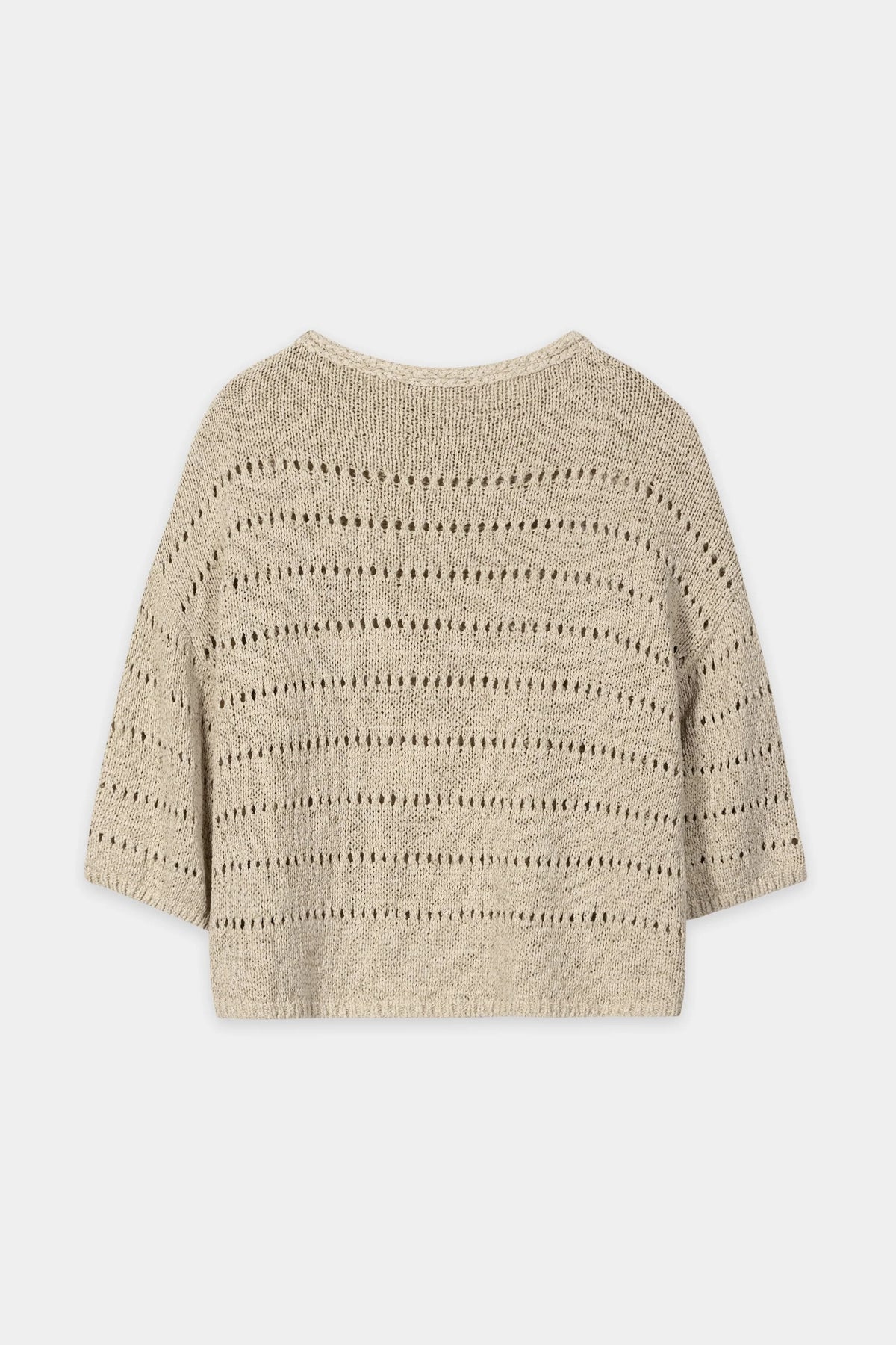 Avec son tricot pointelle linéaire à la texture délicate, ce pull léger apporte une touche d'élégance aérienne à votre garde-robe. Sa silhouette décontractée et ses épaules tombantes lui confèrent un tombé fluide et moderne, idéal pour jouer les superpositions ou pour être porté seul. À la fois raffiné et décontracté, c'est un incontournable pour passer d'une saison à l'autre avec style.