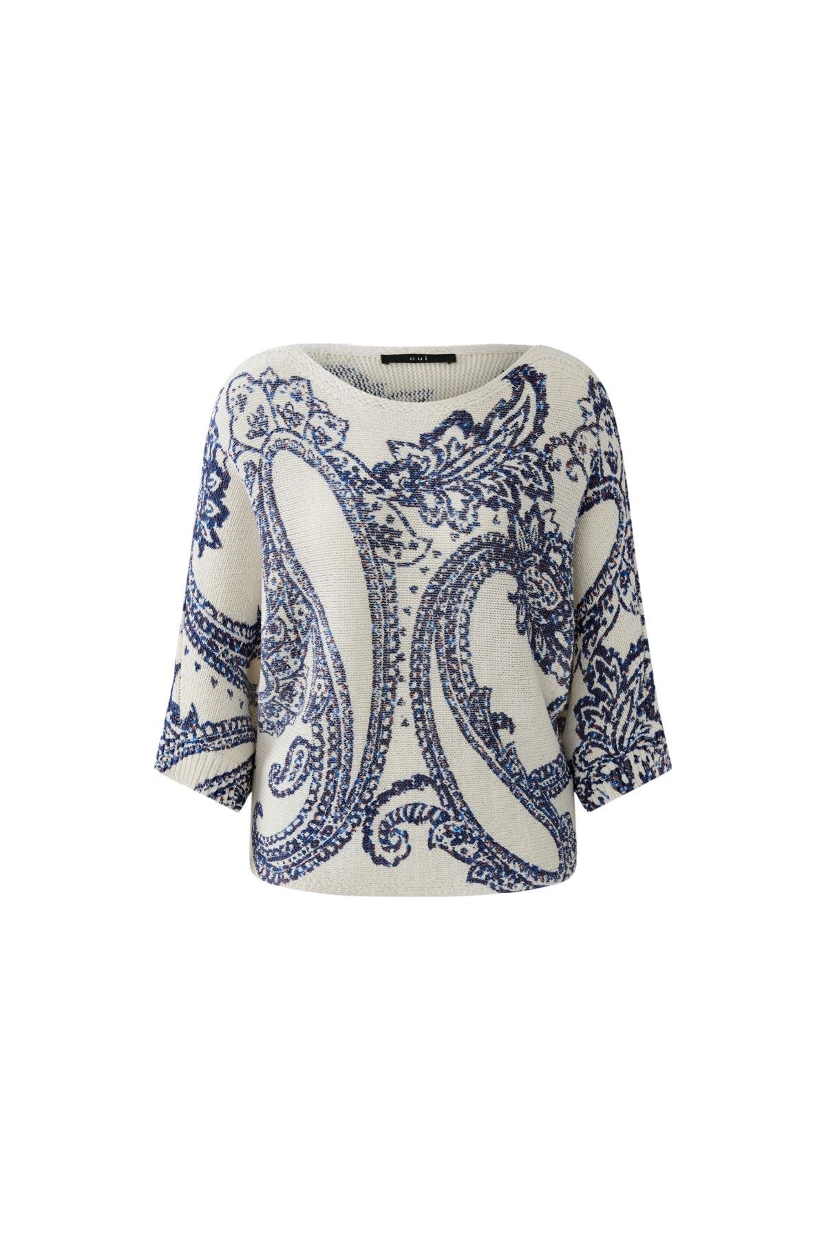 Audacieux et artistique, ce haut en maille présente un motif cachemire oversize tissé dans une silhouette décontractée. L'encolure large et les manches courtes offrent un drapé chic et naturel, alliant confort et style affirmé. Une pièce remarquable, parfaite à associer avec un bas ajusté ou un jean.