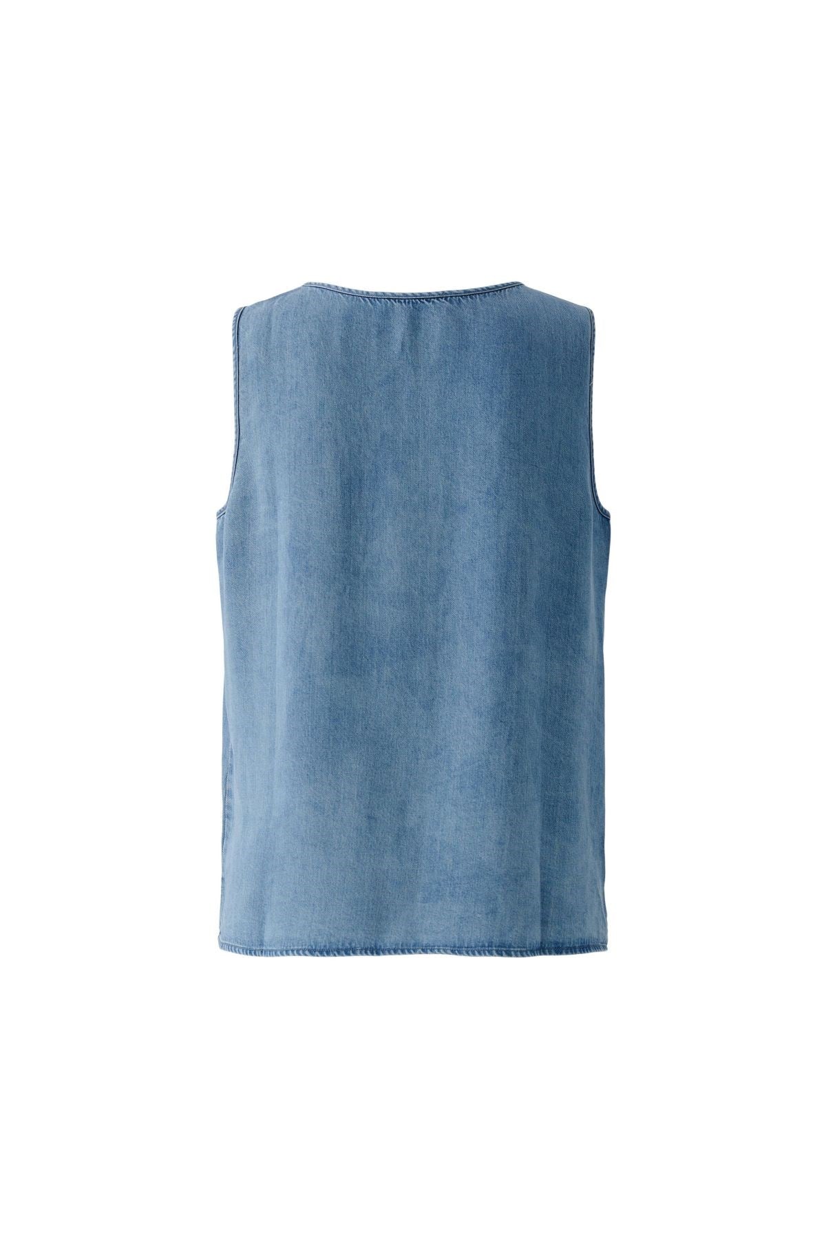 À la fois décontracté et raffiné, ce haut sans manches en chambray présente un aspect denim délavé doux et un décolleté en V flatteur. Les bords francs ajoutent une touche de charme décontracté, ce qui le rend parfait pour les journées chaudes ou sous une veste légère. Un basique intemporel au charme naturel.