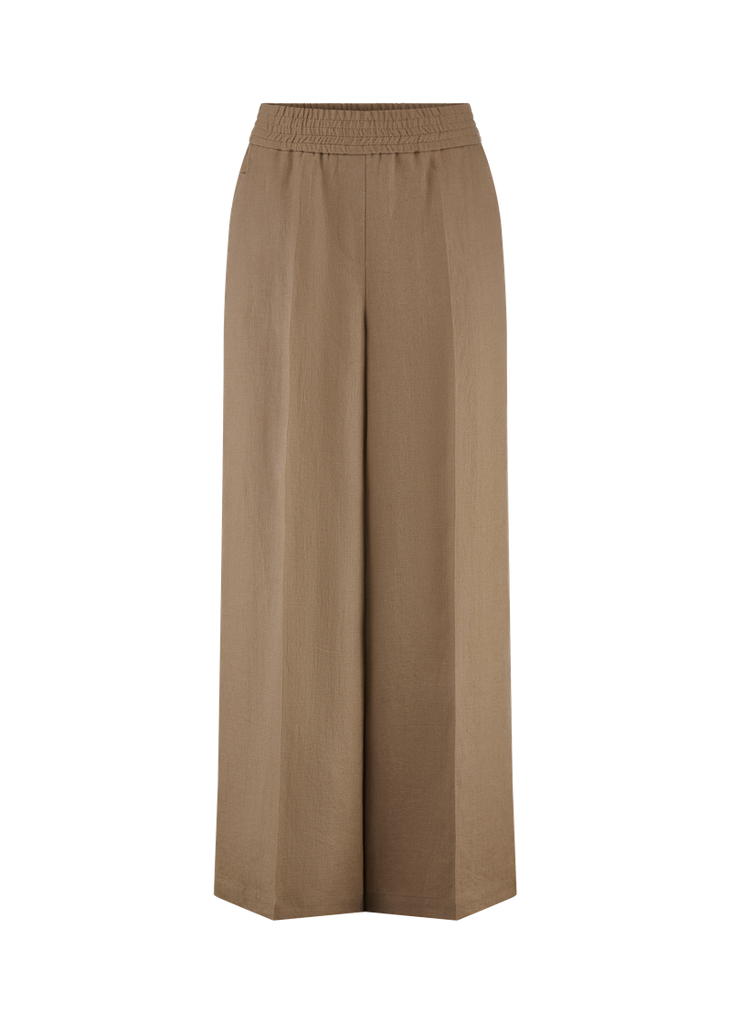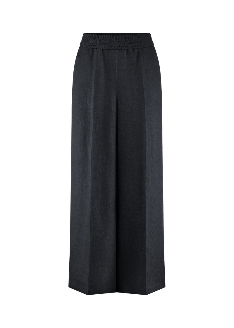 Décontracté et raffiné, ce pantalon à jambes larges est doté d'une ceinture élastique légèrement froncée qui allie confort et style sans effort. Les poches sur les coutures latérales apportent une touche pratique, tandis que les lignes épurées et la silhouette fluide créent une élégance naturelle. Un incontournable pour un look chic au quotidien.