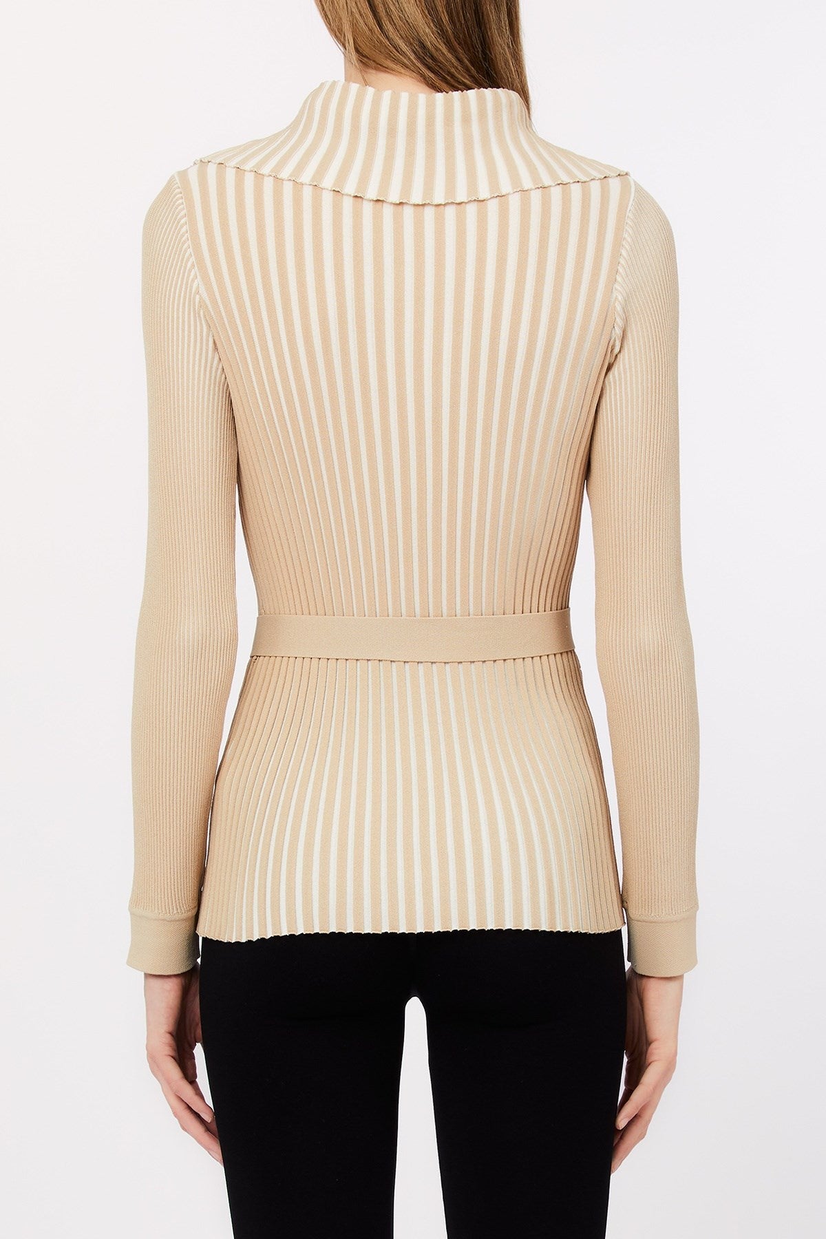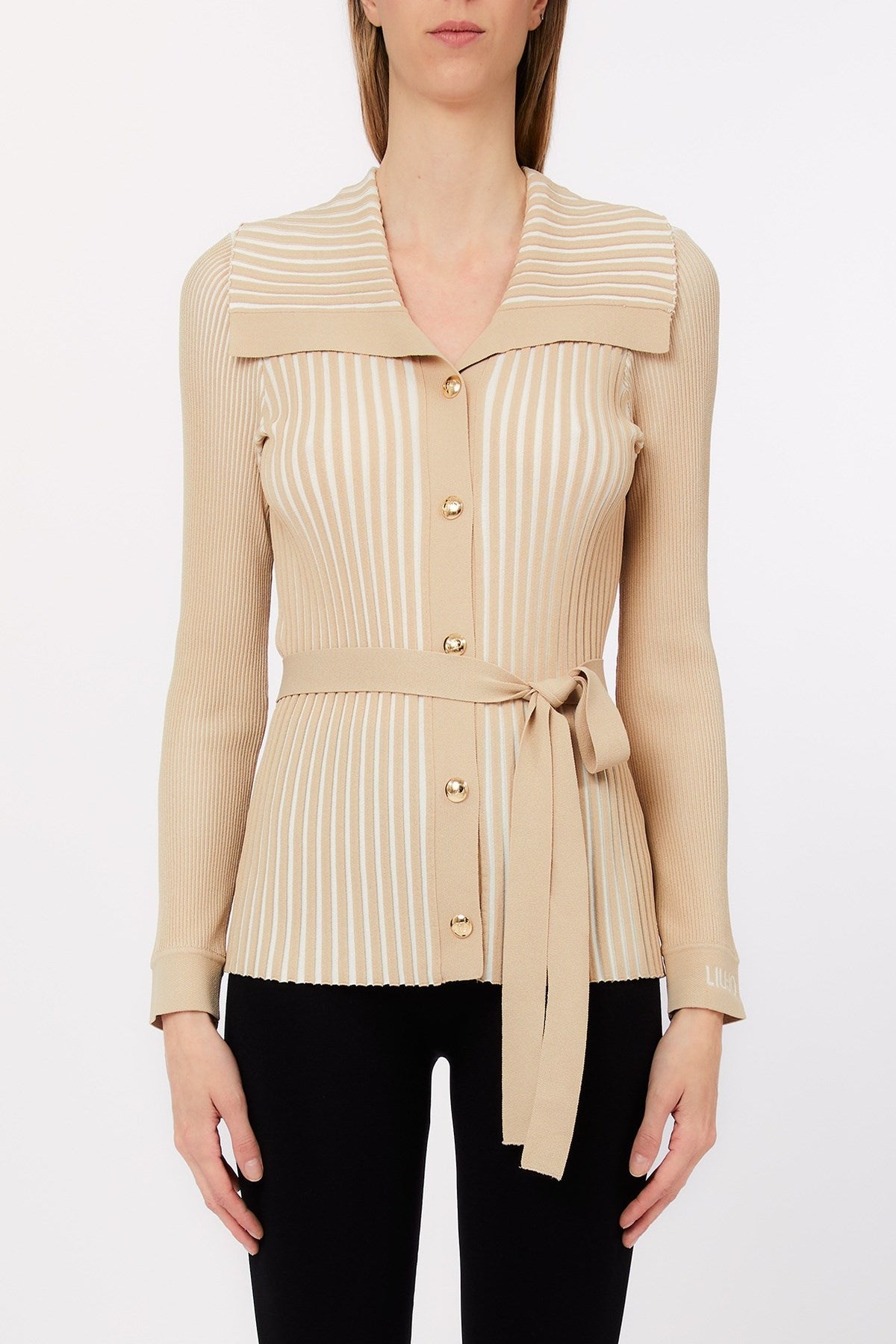 Chic et structuré, ce cardigan en maille côtelée se distingue par son élégant col marin et ses boutons dorés raffinés. Les rayures verticales et la ceinture à nouer soulignent la taille, créant une silhouette féminine et flatteuse. Une pièce raffinée à superposer, au charme intemporel et à l'allure moderne.