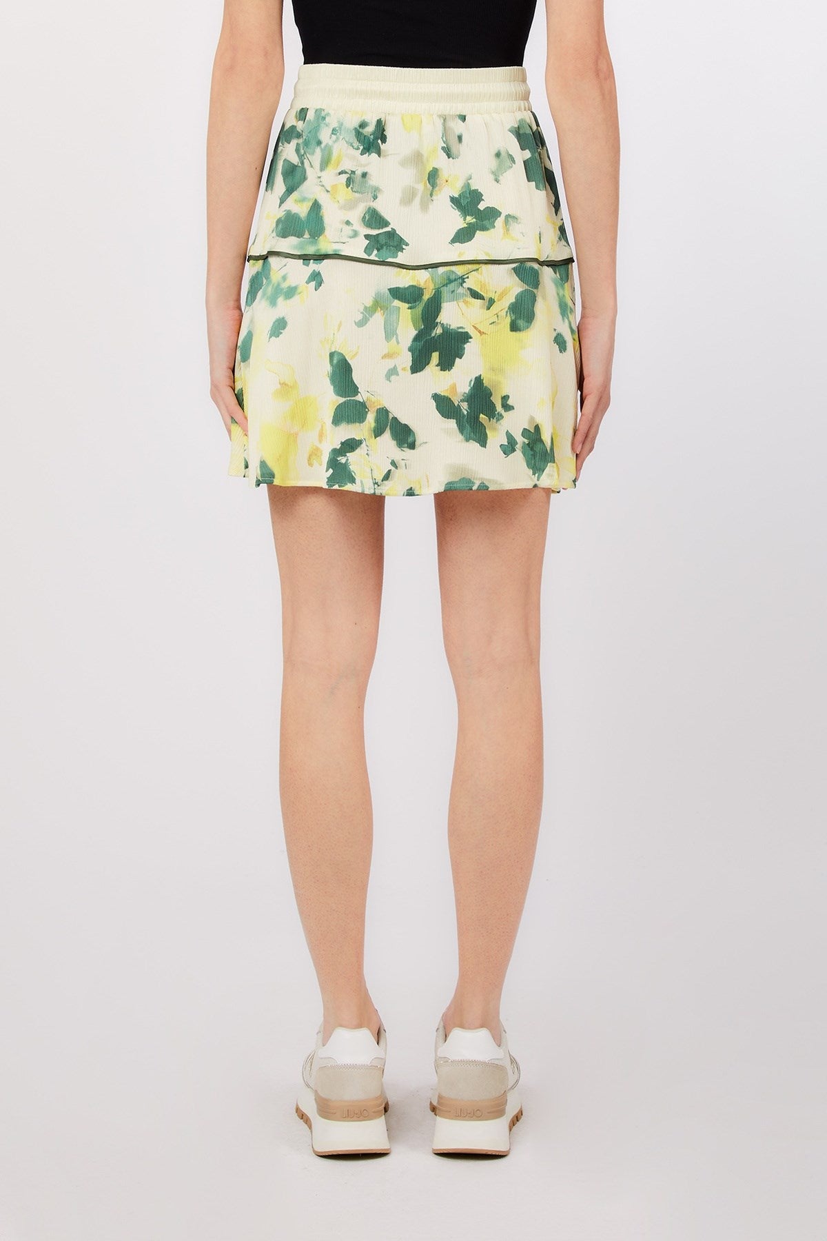 Jouette et légère, cette mini-jupe évasée arbore un imprimé floral délicat et une taille sport à cordon pour un look décontracté. Son effet superposé et ses passepoils contrastés structurent sa silhouette fluide. Une pièce facile à porter qui allie féminité et charme décontracté.