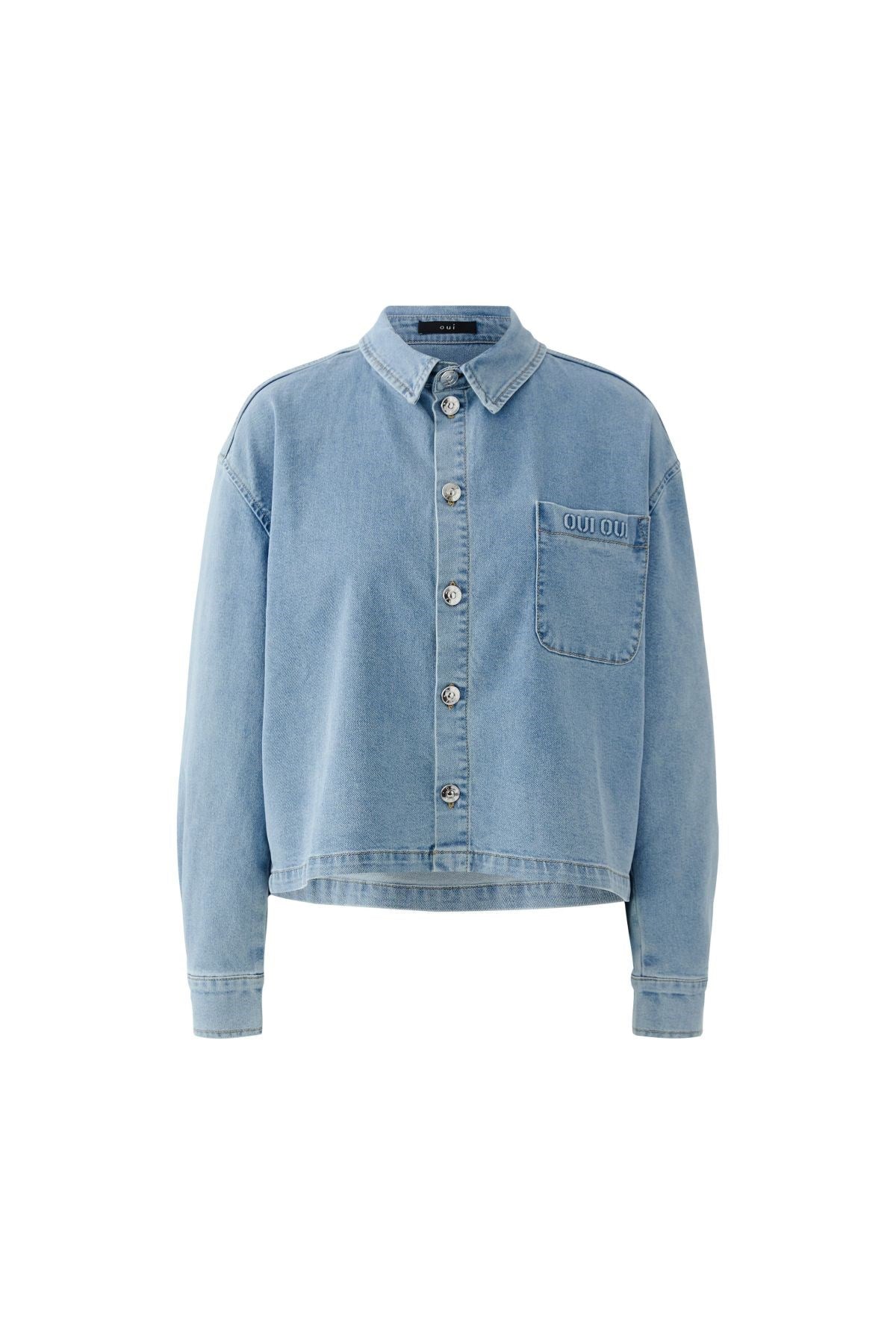 Décontractée et naturellement cool, cette veste courte en denim est un incontournable de votre garde-robe, avec une touche ludique. Avec sa coupe ample à épaules tombantes et sa poche poitrine brodée « OUI OUI », elle allie fonctionnalité classique et charme espiègle. Parfaite pour être superposée ou portée seule comme pièce maîtresse.