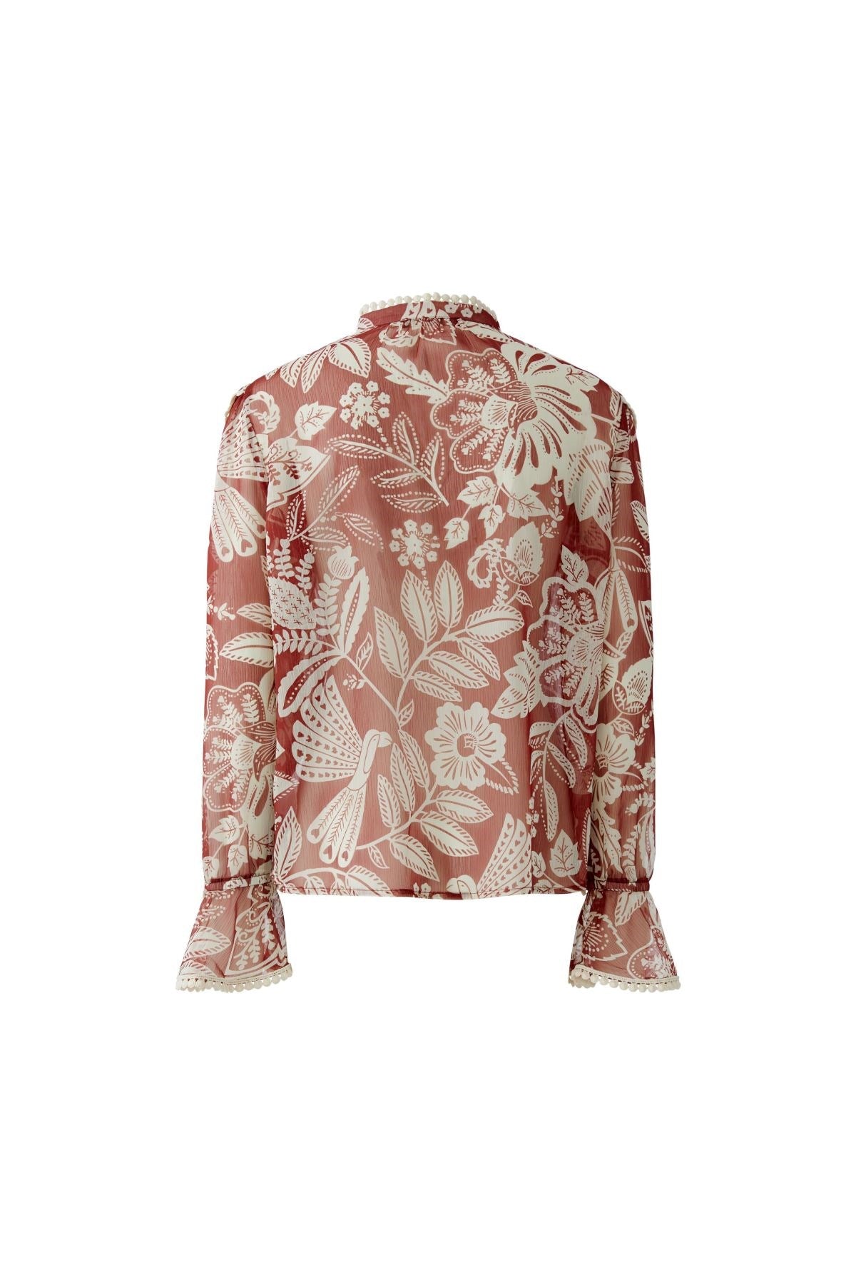 Romantique et fantaisiste, cette blouse transparente séduit par ses volants fluides et son imprimé botanique délicat. Sa bordure en dentelle raffinée et son encolure nouée apportent une touche vintage, tandis que sa silhouette aérienne lui confère une élégance gracieuse. Une pièce phare qui s'associe à merveille avec un pantalon ajusté ou un jean pour une élégance naturelle.