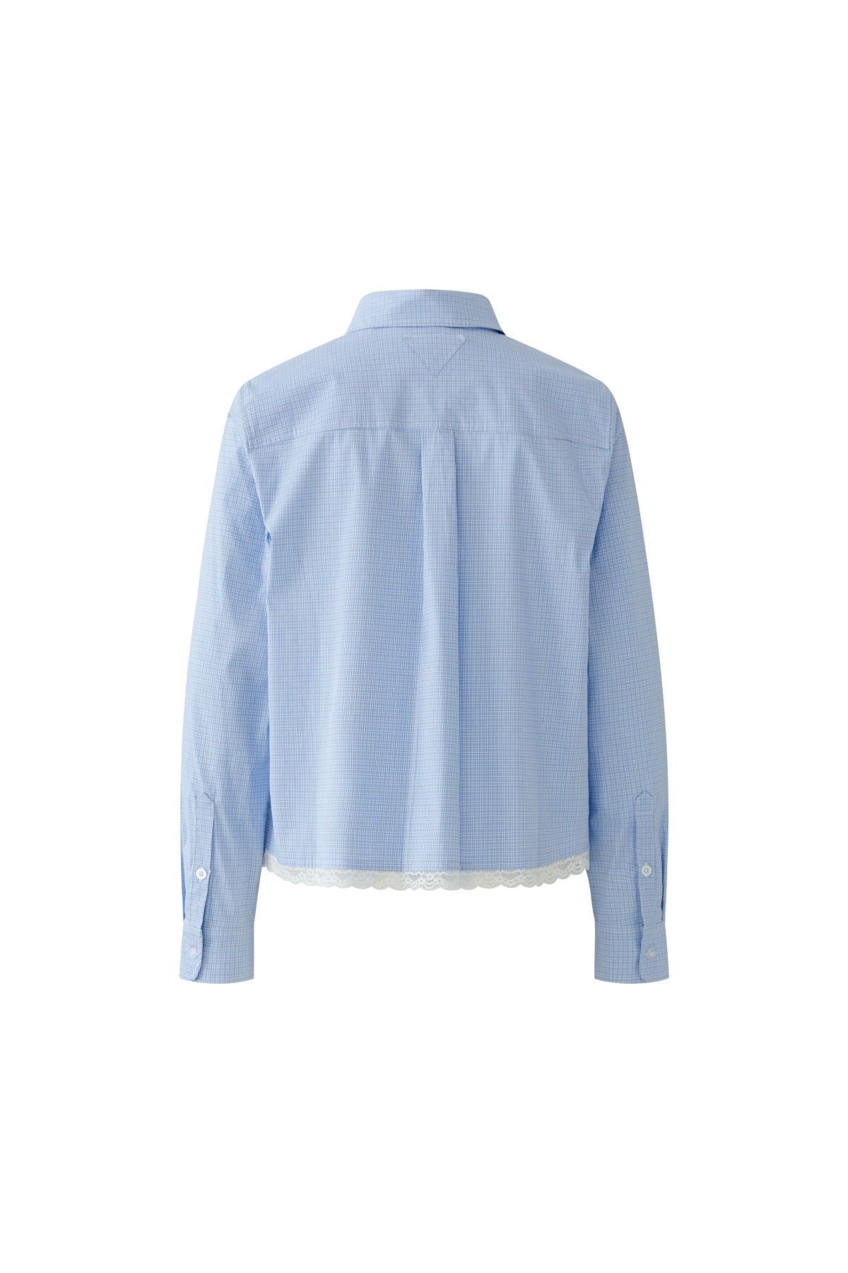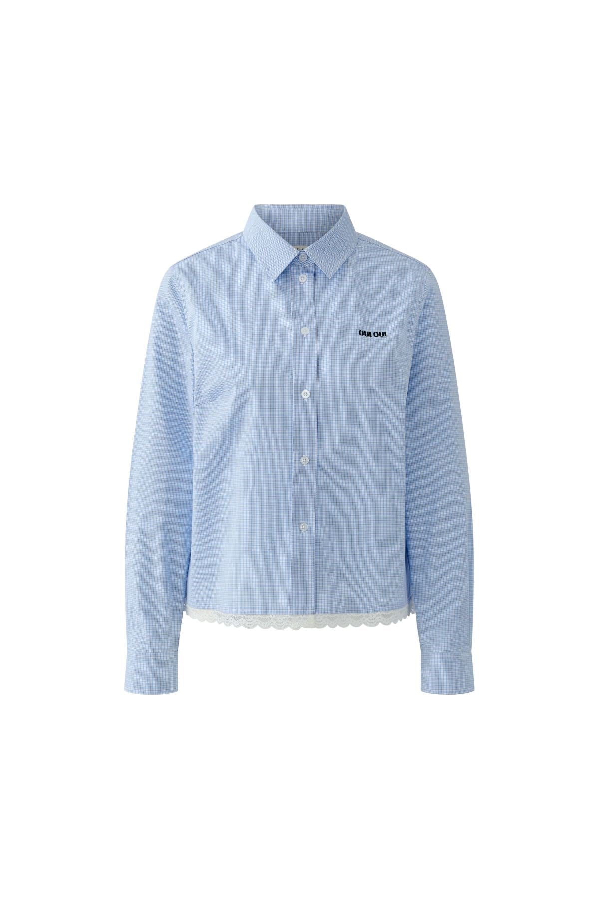 Version douce de la chemise boutonnée classique, cette chemise à carreaux vichy est ornée d'une délicate bordure en dentelle à l'ourlet pour une touche féminine. Le col impeccable et la broderie « OUI OUI » ajoutent une touche ludique et raffinée. Idéale à porter rentrée ou sortie du pantalon, elle apporte du charme à toutes vos tenues.