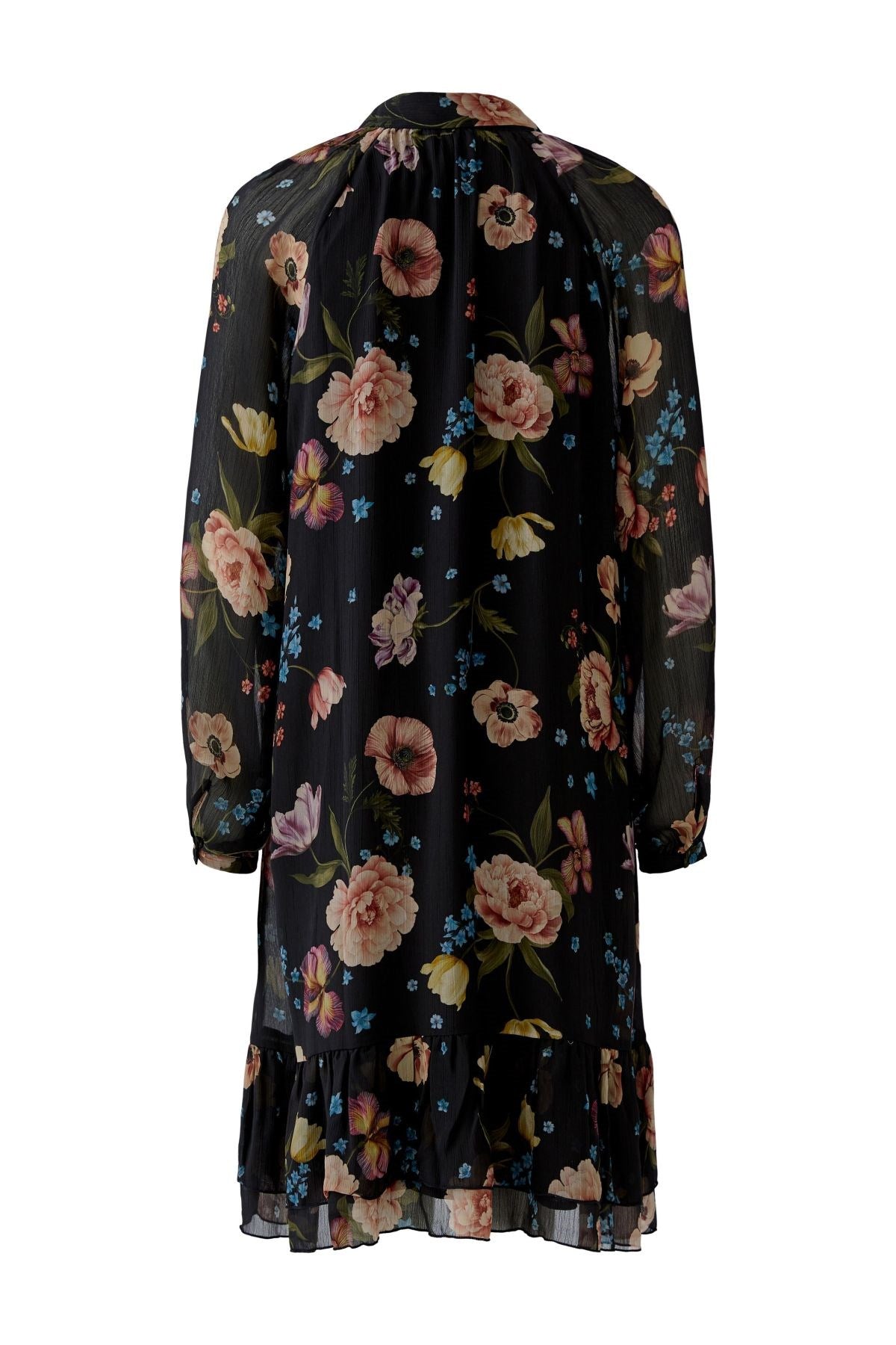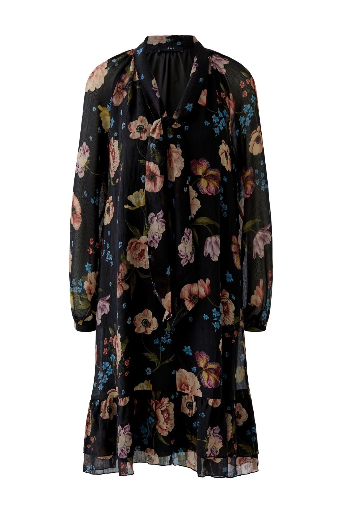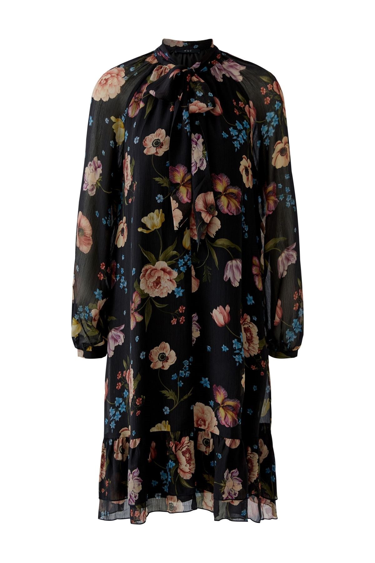 Éthérée et romantique, cette robe fluide à fleurs est dotée d'une superposition transparente qui virevolte à chaque pas. Son encolure délicatement nouée et ses poignets froncés lui confèrent une élégance d'inspiration vintage, tandis que son ourlet à volants ajoute une touche de raffinement. Idéale pour les soirées dans le jardin ou les dîners au clair de lune.