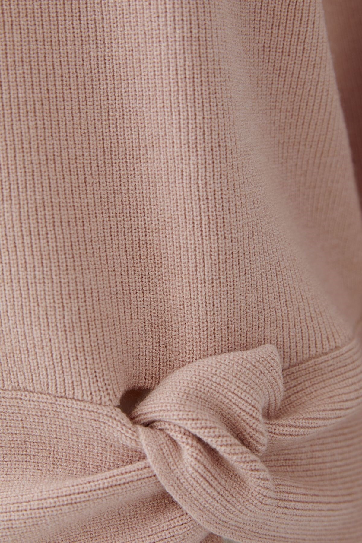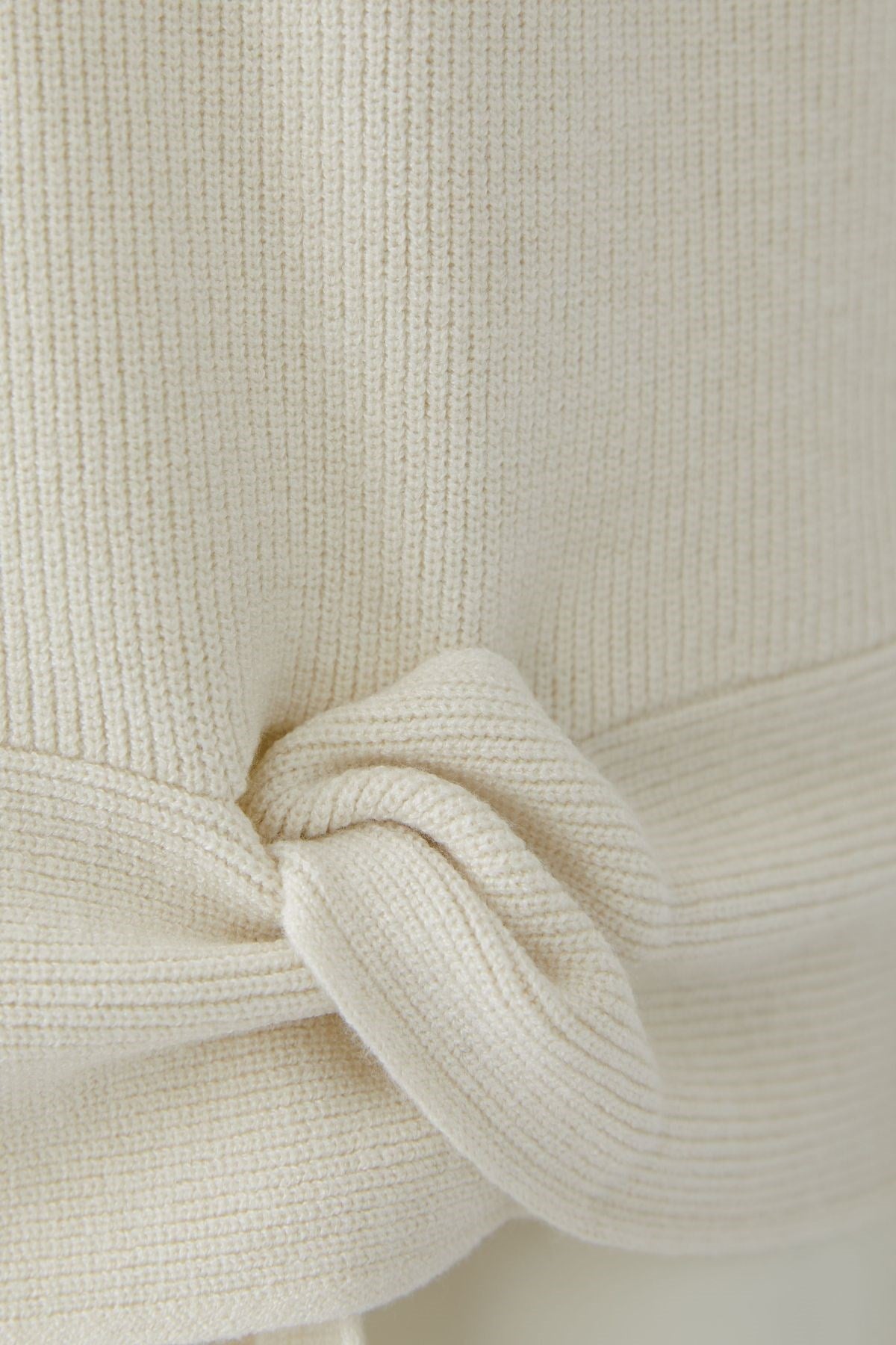 Minimaliste avec une touche d'originalité, ce pull en maille douce présente un détail noué flatteur à l'ourlet pour une touche ludique et sculptée. La silhouette épurée et les épaules tombantes offrent une élégance décontractée qui convient aussi bien aux looks décontractés qu'aux looks sophistiqués. Une pièce polyvalente qui allie confort et sophistication discrète.