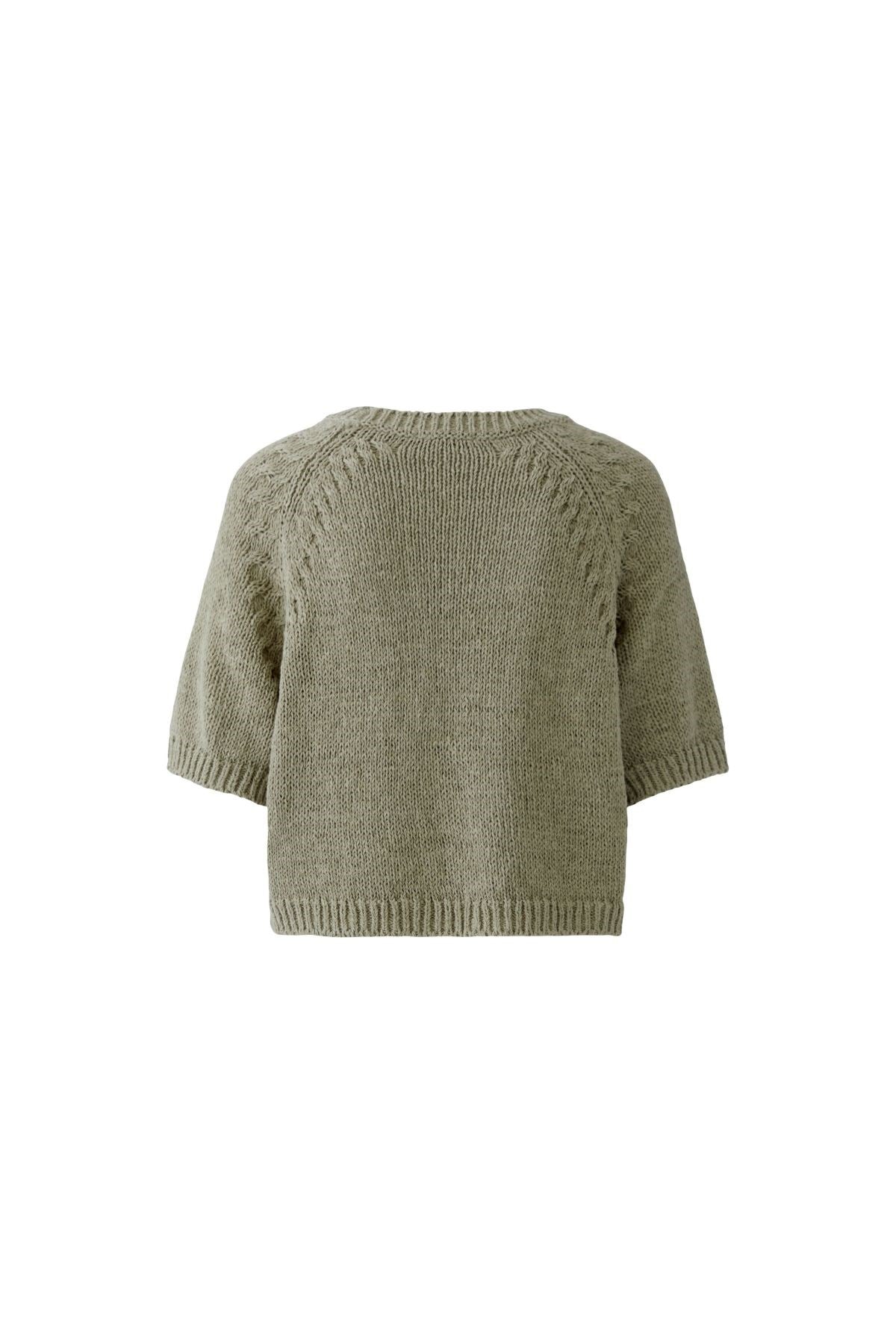 Audacieux et magnifiquement épais, ce pull à manches courtes en maille apporte texture et chaleur avec une touche ludique. Sa coupe décontractée et ses bords côtelés lui confèrent un style décontracté, tandis que les détails complexes des coutures le long des épaules ajoutent une touche raffinée. Une pièce remarquable, parfaite pour la transition entre les saisons.