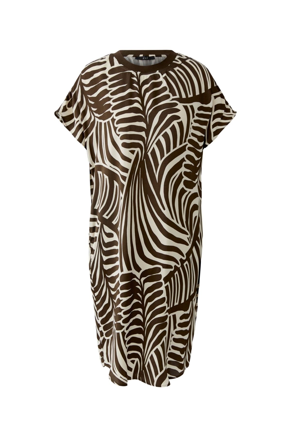 Remarquable et facile à porter, cette robe t-shirt affiche un style audacieux avec son imprimé abstrait inspiré des feuilles et sa silhouette fluide. Sa coupe décontractée et ses manches courtes lui confèrent un charme facile à porter, parfait pour les journées ensoleillées ou les balades en ville. Une pièce unique qui allie confort et style remarquable.