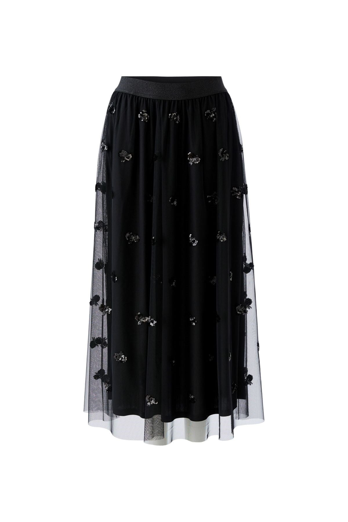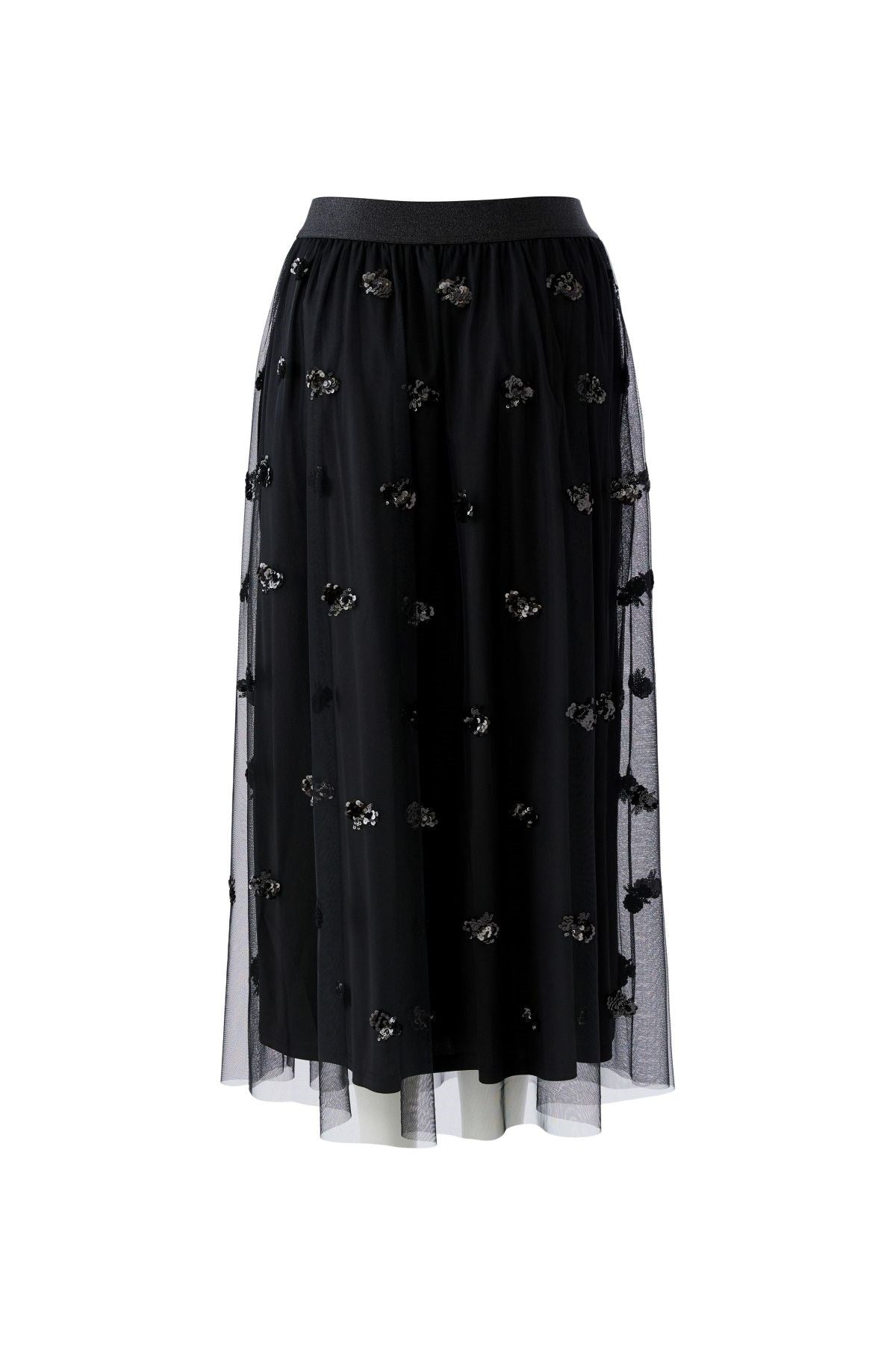 Rêveuse et décadente, cette jupe midi en tulle scintille grâce à ses délicates paillettes disséminées sur sa superposition transparente. La ceinture souple et froncée offre un confort optimal tout en conservant une silhouette raffinée. Idéale pour ajouter une touche d'éclat à vos tenues de soirée comme à vos looks chics de jour.
