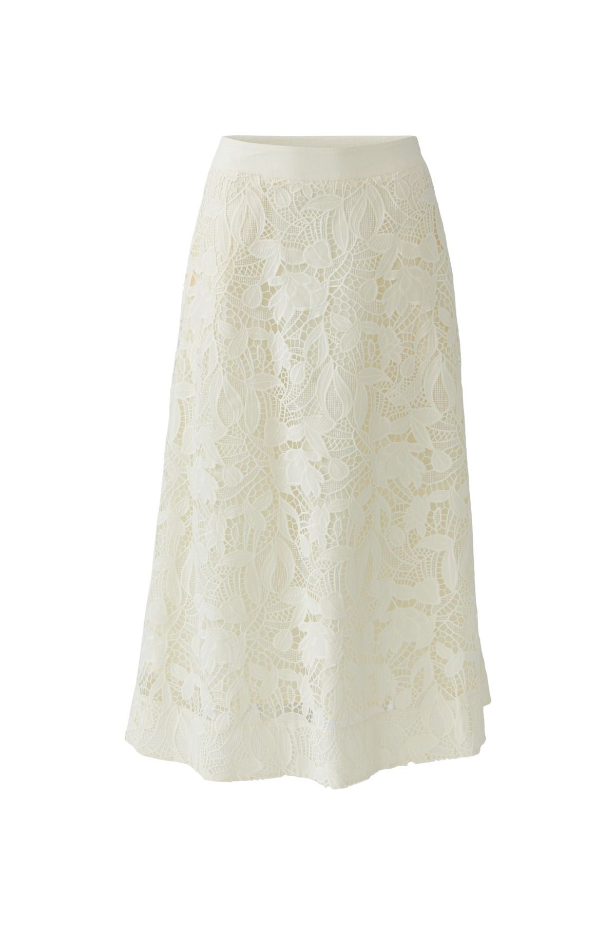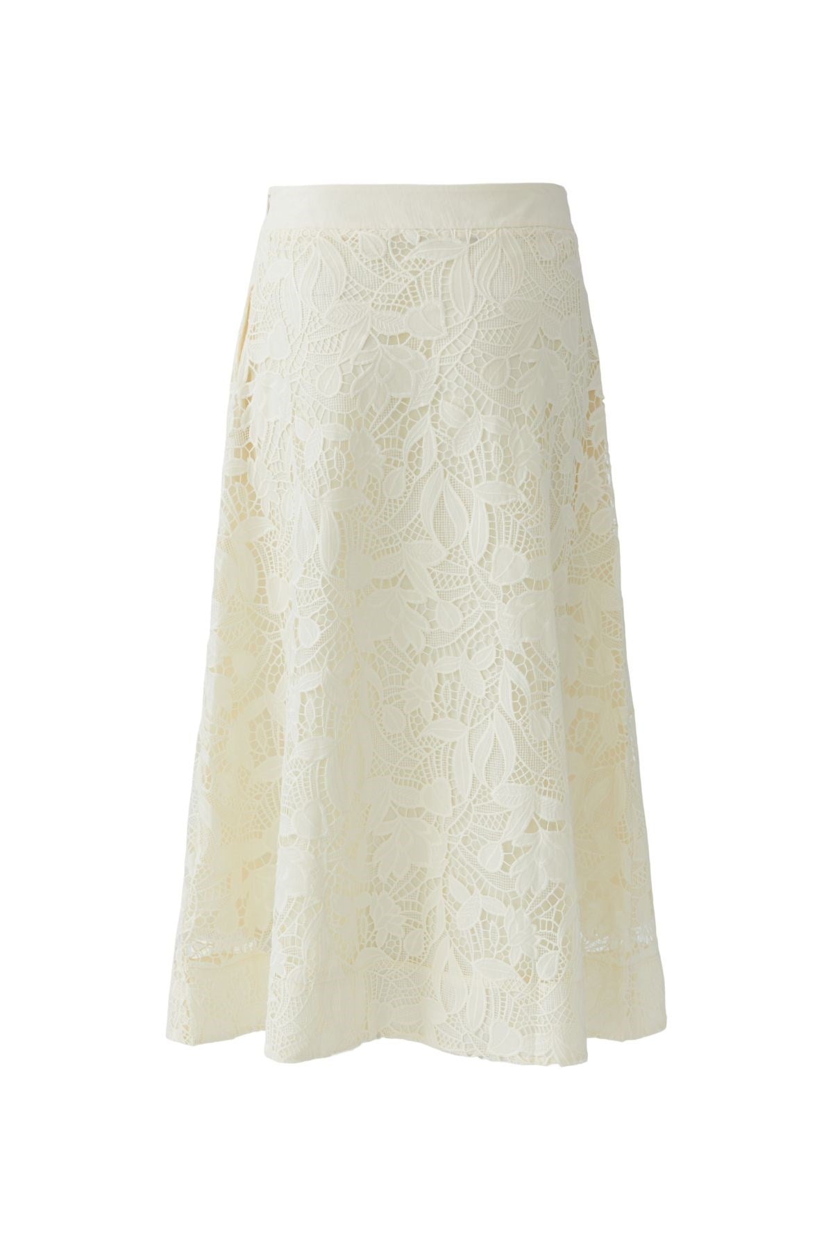 Romantique et raffinée, cette jupe midi est ornée d'une dentelle complexe à motif floral à la fois intemporel et moderne. Sa coupe trapèze fluide lui confère une allure gracieuse, tandis que sa taille élastique assure un confort optimal tout au long de la journée. Une pièce phare qui ajoute une touche d'élégance à toutes vos tenues.