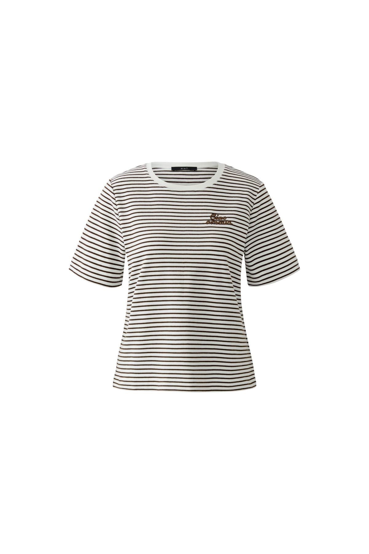 Intemporel et ludique, ce t-shirt rayé présente un col rond classique et une subtile broderie qui lui confère une touche de charme. Sa silhouette épurée et ses lignes nettes en font un vêtement polyvalent, idéal pour un style chic et décontracté. Associez-le à un jean ou à des vêtements ajustés pour un look français naturel.