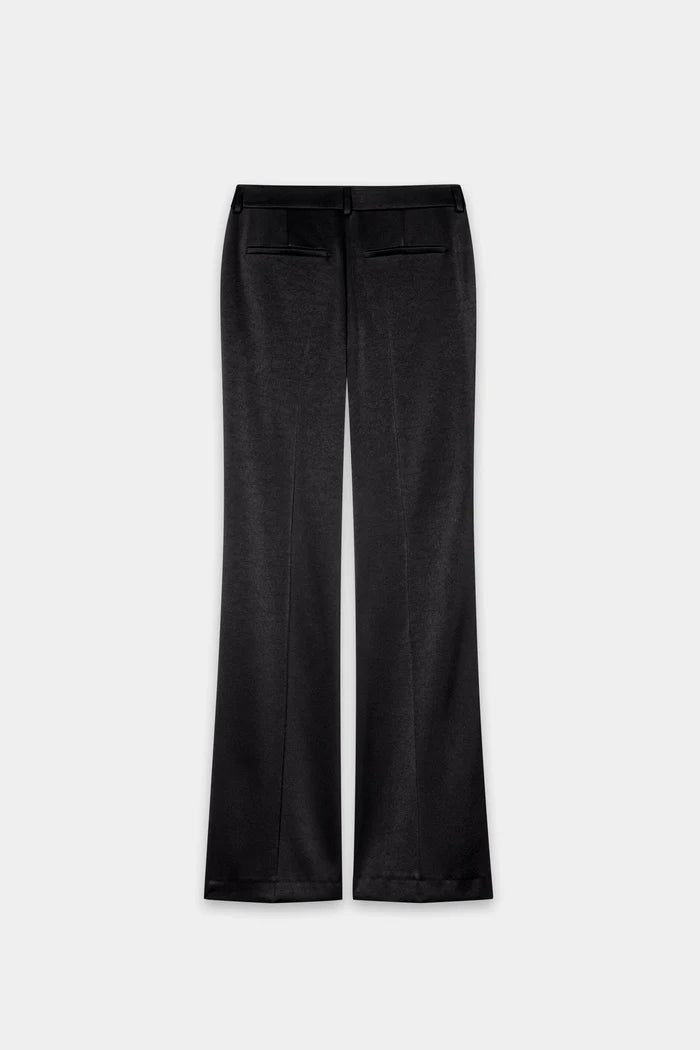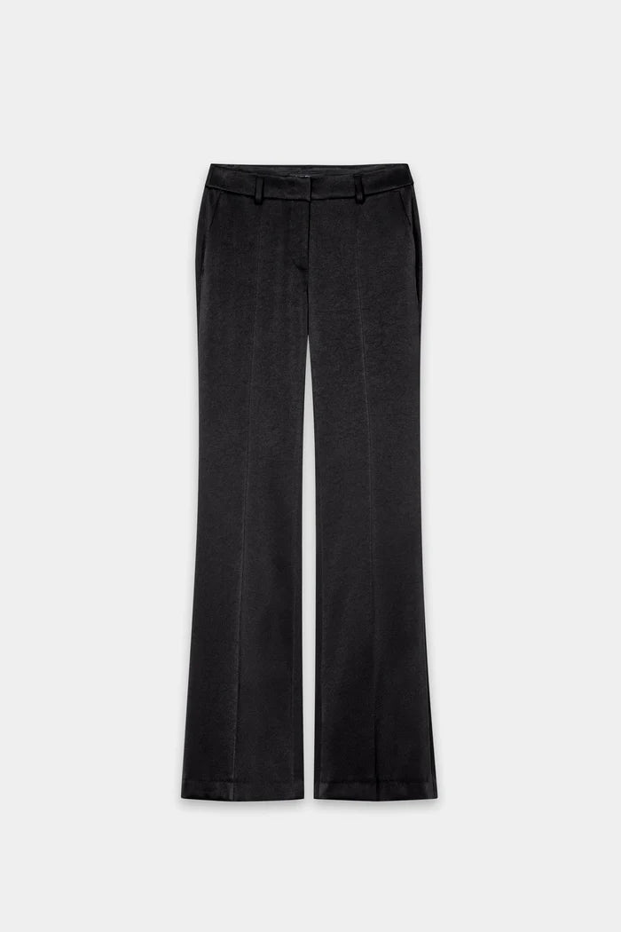 Polis avec une touche de brillance, ces pantalons ajustés offrent un tombé fluide et une élégance allongée. Les plis marqués et le léger évasement confèrent une silhouette intemporelle, parfaite pour les soirées chics et les tenues de jour raffinées. Un basique luxueux à la sophistication naturelle.
